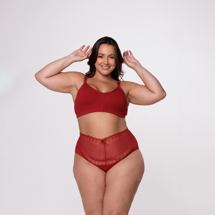 Caleçon Plus Size em Renda na Cor rubi