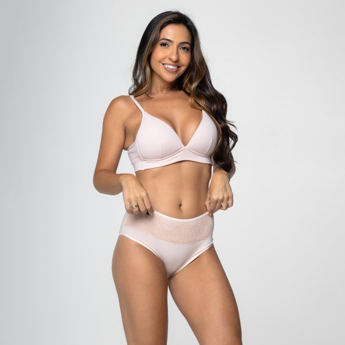Confeccionado em algodão egípcio, o sutiã destaca-se por seu toque macio, respirabilidade e alta durabilidade, garantindo o bem-estar íntimo em todas as ocasiões.