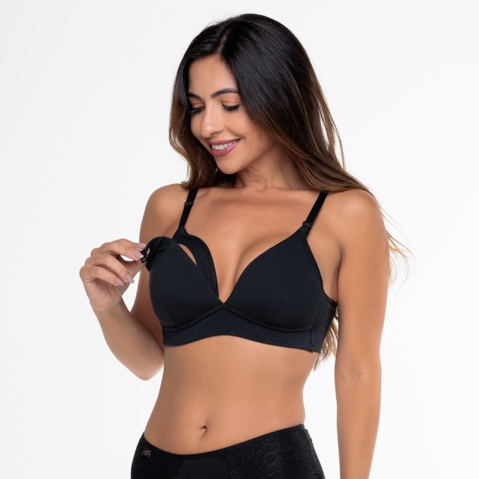Sutiã Triângulo de amamentação SEM Aro com Bojo Flexível. Garante conforto, sustentação e descrição.