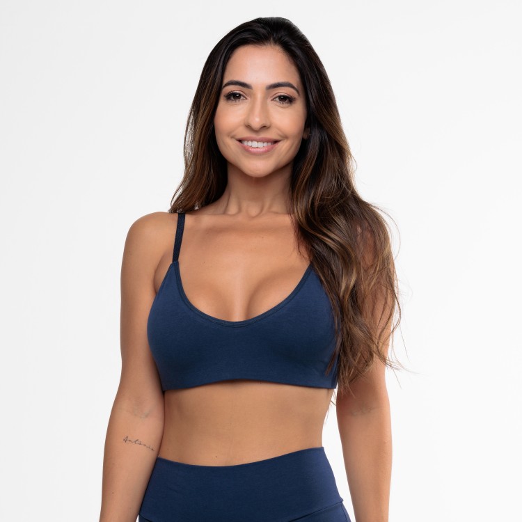 Sutiã Básico em Algodão Egípcio sem Bojo na cor Azul Marinho