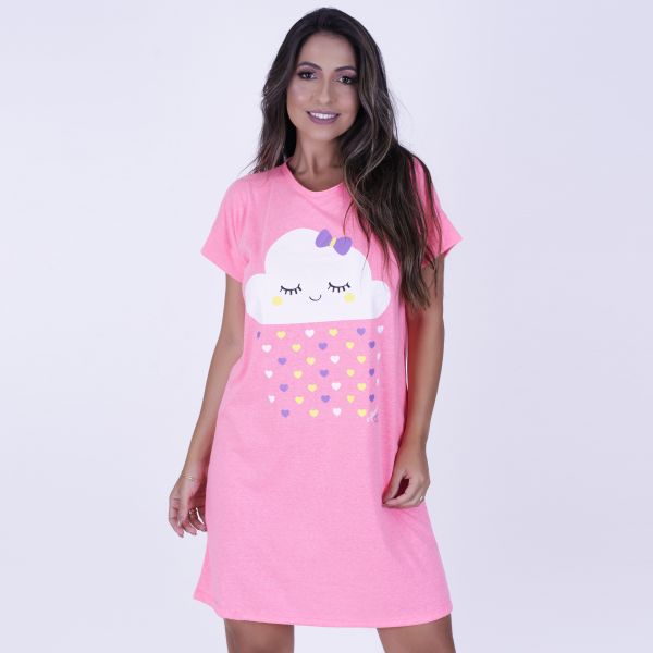 Camisão Pink flúor com estampa em Silk Nuvem Manga Curta, confeccionada em algodão com poliéster que apresenta modelagem reta com decote arredondado. Confortável e divertida, a peça garante momentos agradáveis de descanso e boas noites de sono. Acompanha linda necessaire na cor Pink Flúor estampa em silk Nuvem.