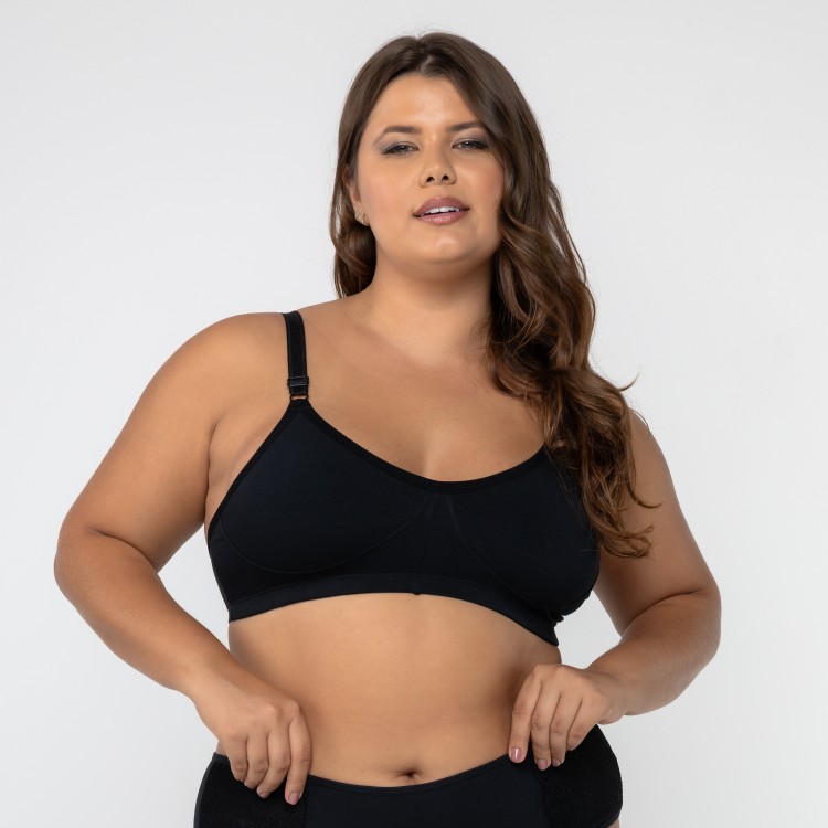 Sutiã em Algodão Egípcio sem Bojo com Alça Reforçada na cor preta