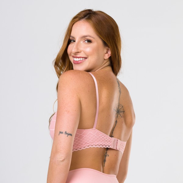 Sutiã com bojo flexível sem aro em renda na cor Romance