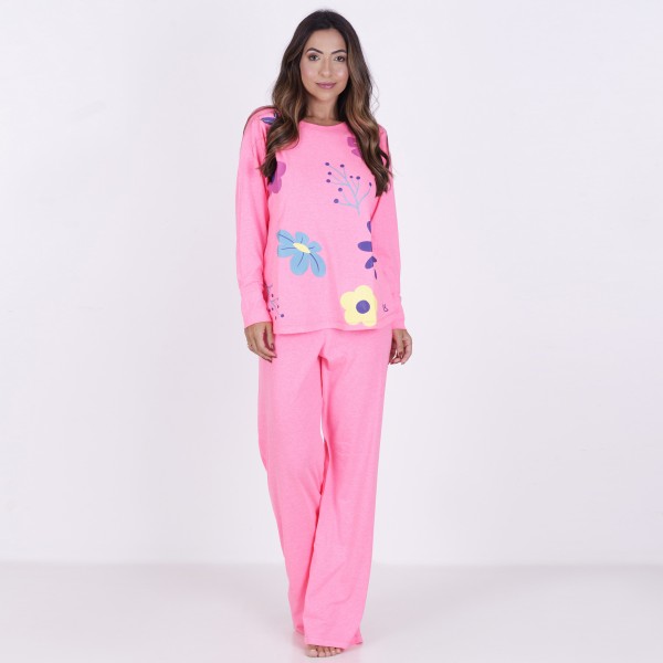 Pijama em algodão , manga longa e calça comprida com estampa de silk, cadarço na cintura para que você ajuste perfeitamente no corpo. Muito confortável e muito estiloso. Linda estampa de flores . Coleção nova e exclusiva.