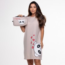 Camisão laranja com estampa silk panda Manga Curta, confeccionada em algodão com poliéster que apresenta modelagem reta com decote arredondado. Confortável e divertida, a peça garante momentos agradáveis de descanso e boas noites de sono. Acompanha linda necessaire na cor laranja .