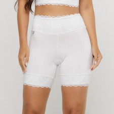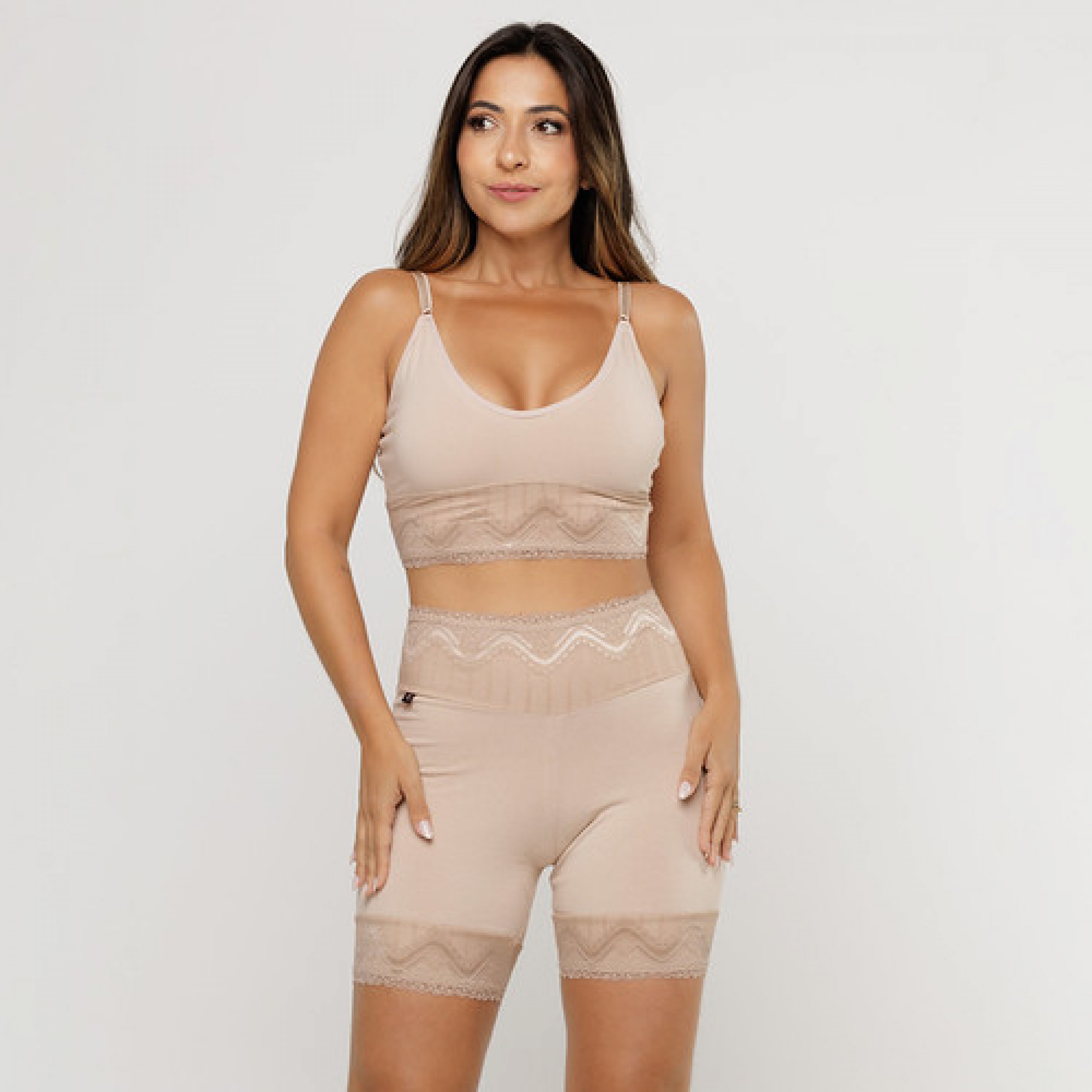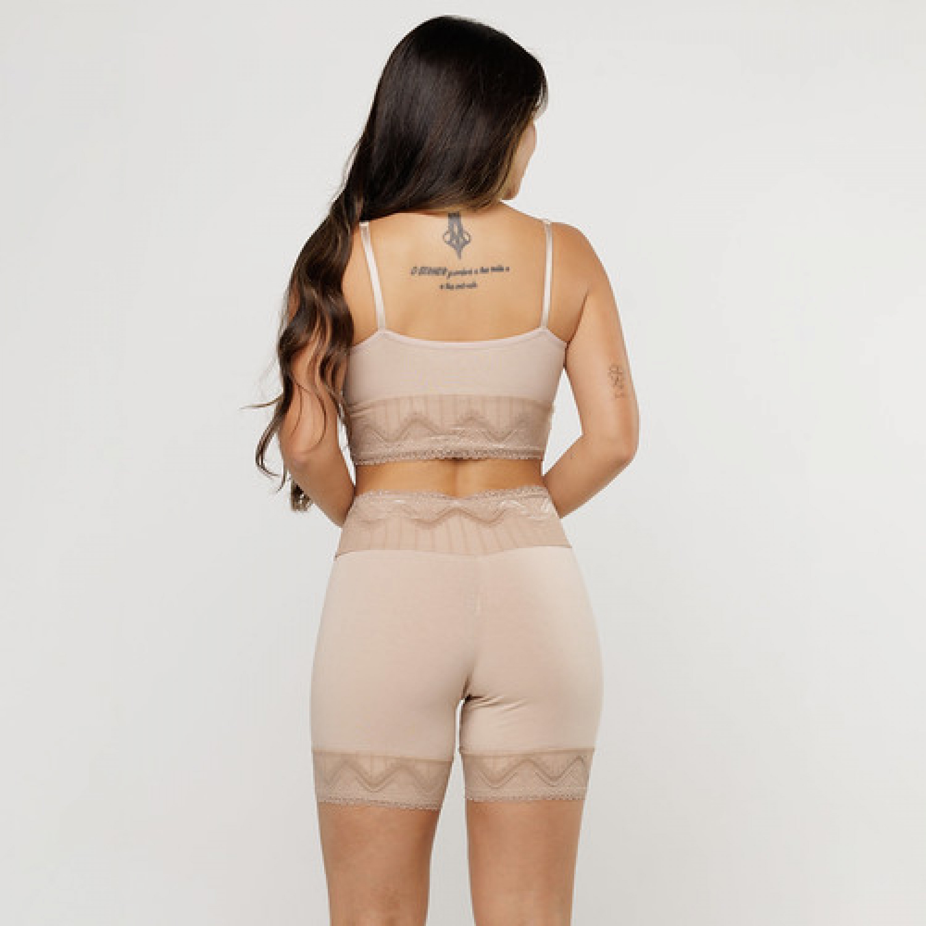 Conjunto cropped em algodão com renda Branca P.A sem bojo.