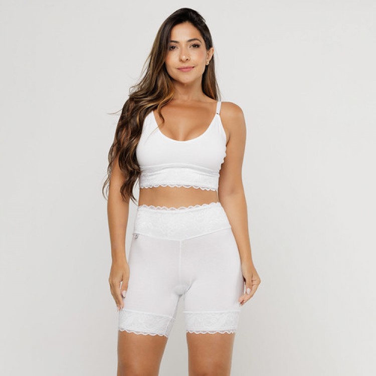 Bermuda em Algodão Egípcio Renda Branco