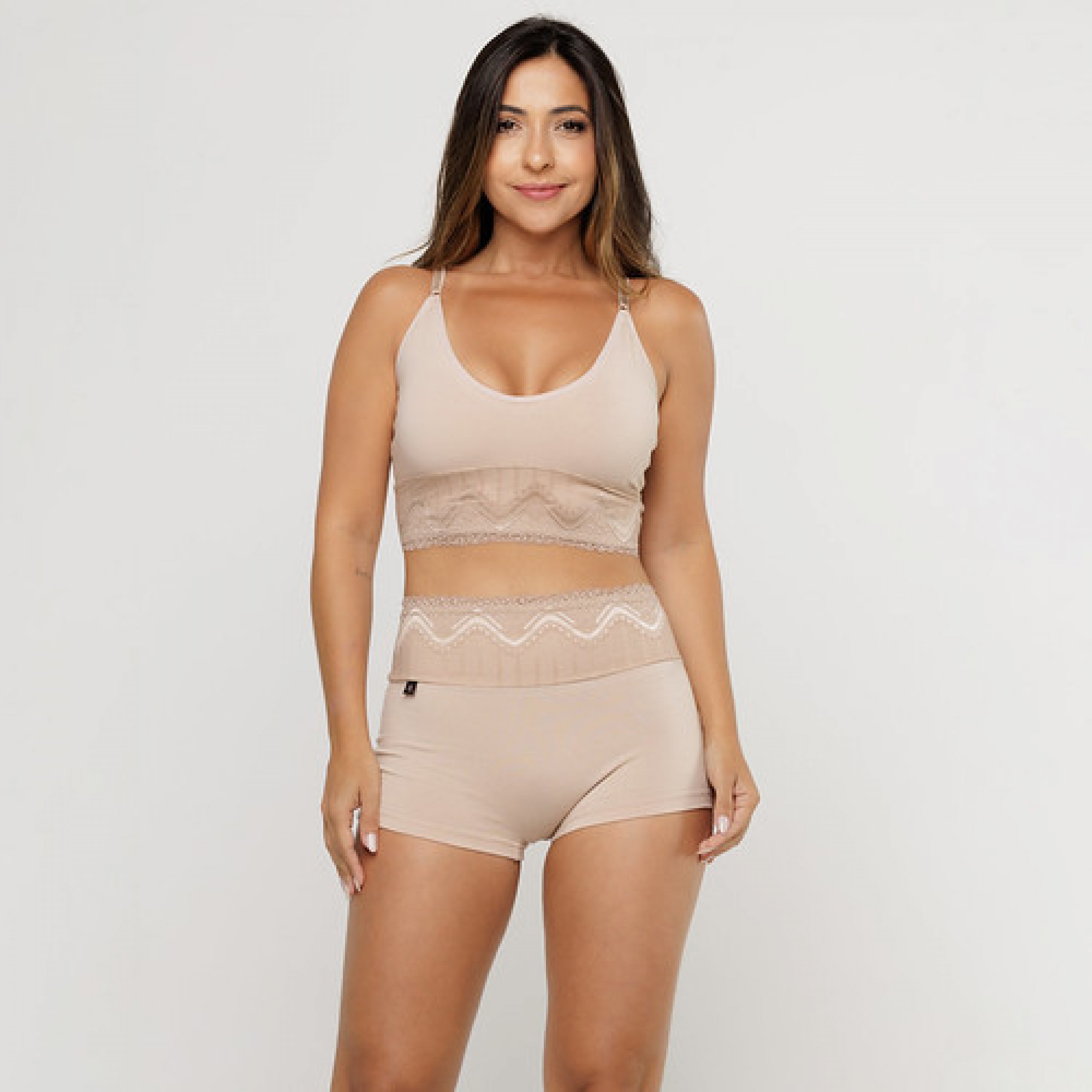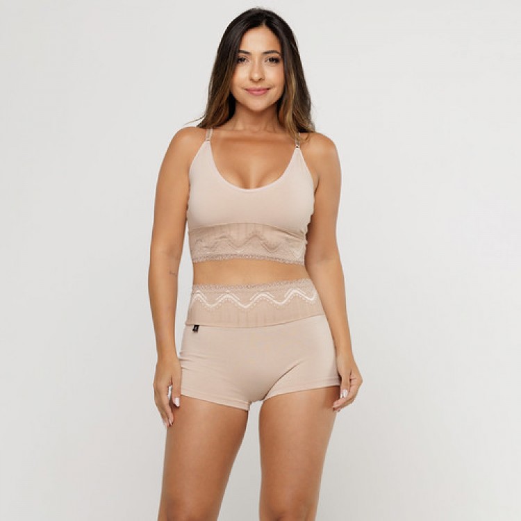 • Cueca Feminina em Algodão Egípcio Renda na Cintura Areia