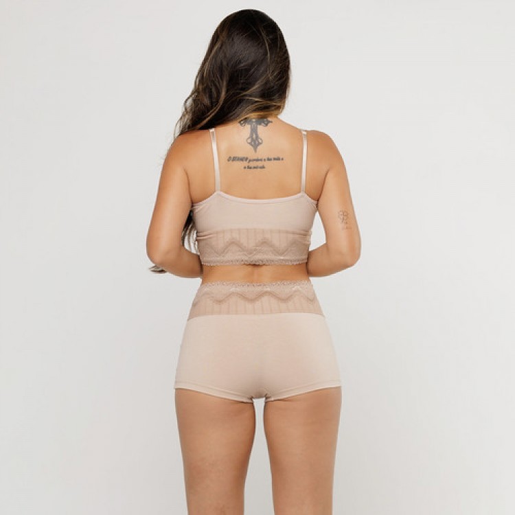 Cueca Feminina em Algodão Egípcio Renda na Cintura Areia