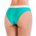 Tanga na cor Verde Esmeralda, confeccionada em algodão egípcio com viés de elastano e poliamida nas pernas e renda na cintura, lateral e costas mais largas e frente com estampa poá em silk. Ideal para o seu dia a dia.
