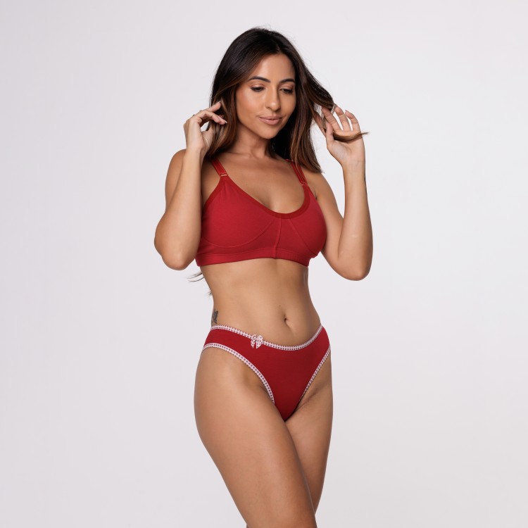 Esta calcinha básica é confeccionada em algodão egípcio, proporcionando um toque macio e confortável. O design apresenta viés em poliamida e elastano com estampa xadrez, além de um delicado laço que adiciona um toque de charme à peça. A modelagem é super confortável, ideal para o uso diário.