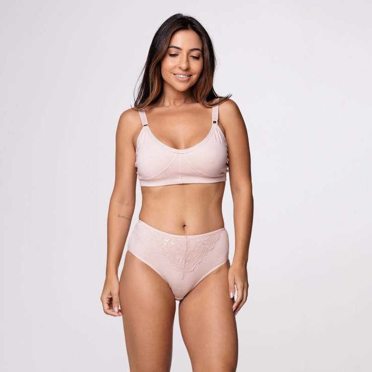 Calcinha de cintura alta na cor Nude com detalhe em renda